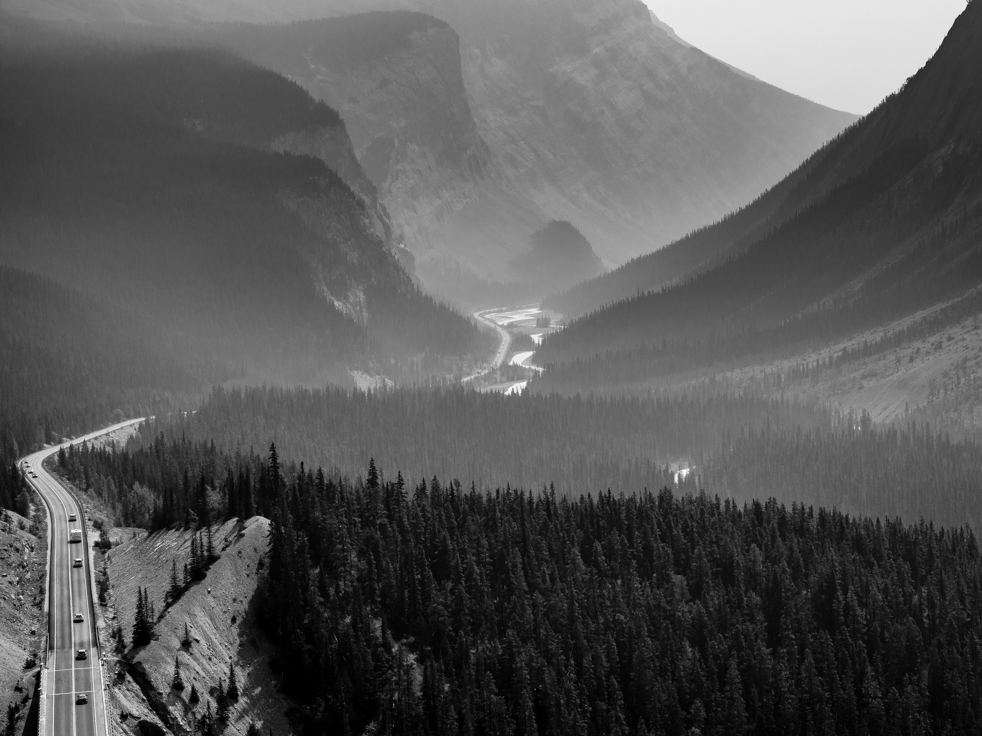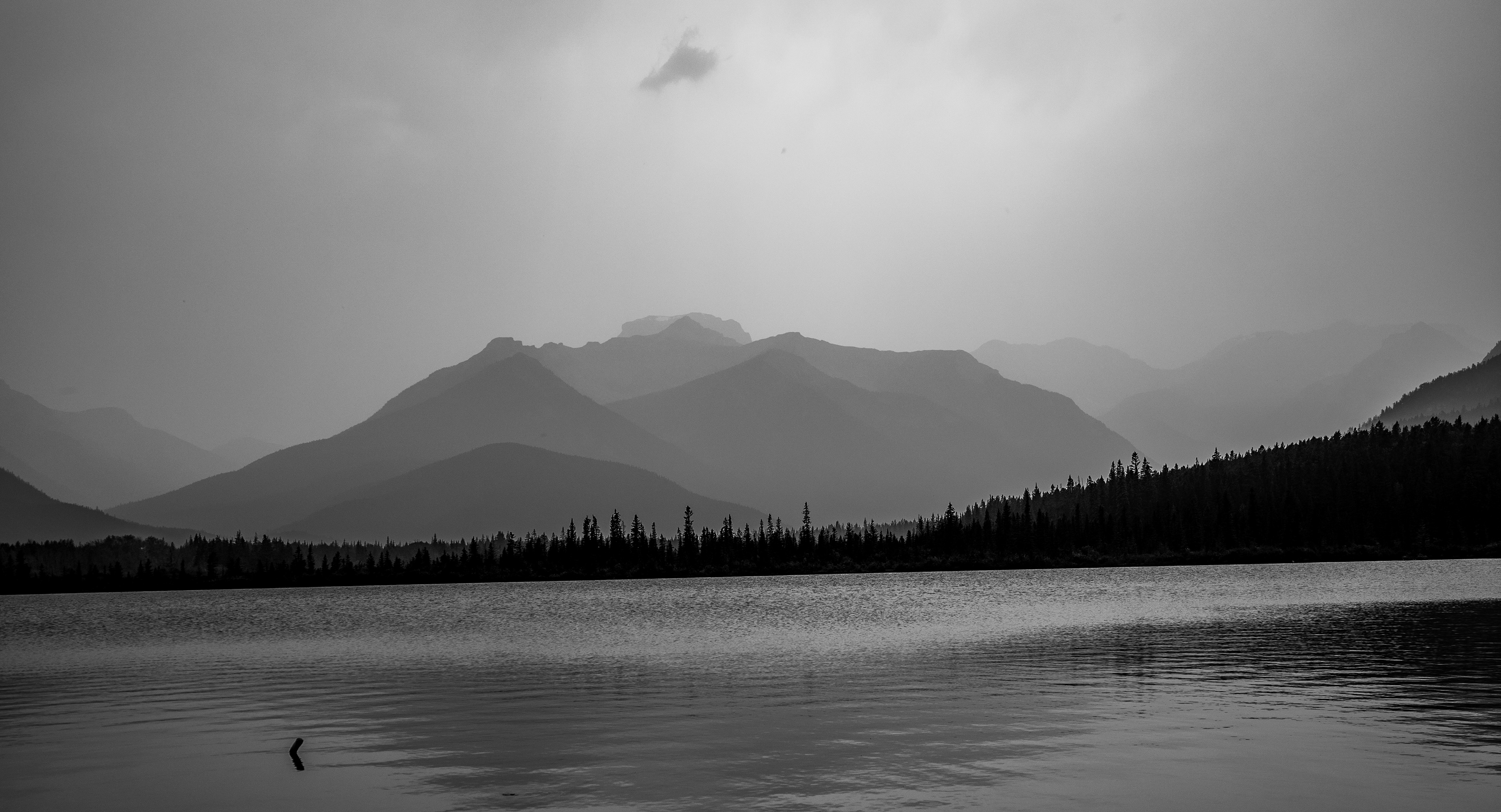 I was disappointed to find that I was in British Columbia at the time of the fires . I could not get a clear shot many times of the mountains in their glory. Looking back on the pictures I find another aspect of beauty and present it here. The mountains in black and white.