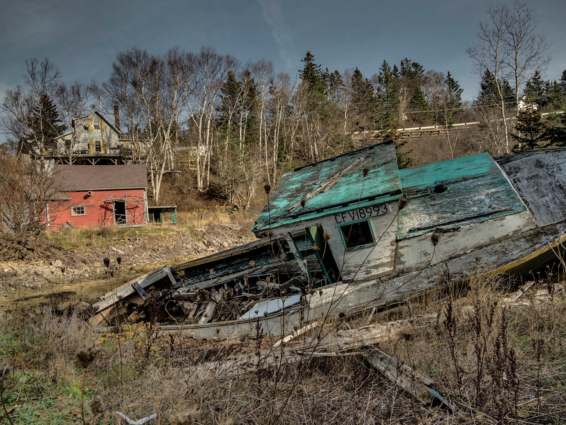 Small lobster port in the Bay of Fundy is so beautiful in it's rough blending with nature. Notice the port is carved and protected with stone seawall. My wife and I walking around learning the features of new cameras for both of us. We were gifted with a lovely day. There are many such ports as Nova Scotia has a lengthy coastline.