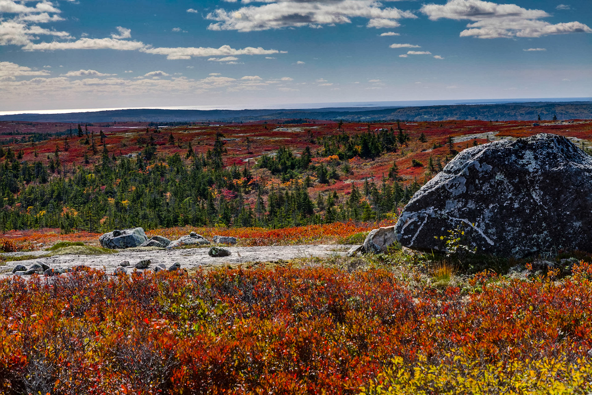 The old Lundy Fire Tower was replaced by agly communication tower. The hill still exhibits the dramatic beauty of Nova Scotia even in it's stark barrenness. This was once dense forest but was stripped for its wood and not reforested.